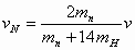 實(shí)驗(yàn)室核反應(yīng)源產(chǎn)生一未知粒子,它與靜止的氫核正碰,測(cè)出碰后氫核的速度是3.3×107 m/s;它跟跟靜止的氮核正碰,測(cè)出碰后氮核的速度是4.7×106 m/s.上述碰撞都是彈性碰撞.求未知粒子(速度不變)的質(zhì)量數(shù).這是歷史上查德威克發(fā)現(xiàn)中子的實(shí)驗(yàn).