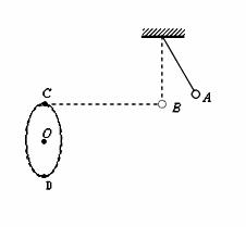 浙江衛(wèi)視六頻道《我老爸最棒》欄目中有一項人體飛鏢項目,該運動簡化模型如圖所示。某次運動中,手握飛鏢的小孩用不可伸長的細繩系于天花板下,在A處被其父親沿垂直細繩方向推出,擺至最低處B時小孩松手,飛鏢依靠慣性飛出擊中豎直放置的圓形靶最低點D點,圓形靶的最高點C與B在同一高度,C、O、D在一條直徑上,A、B、C三處在同一豎直平面內,且BC與圓形靶平面垂直。已知飛鏢質量m=1kg,BC距離s=8m,靶的半徑R=2m,AB高度差h=0.8m,g取10m/s2。不計空氣阻力,小孩和飛鏢均可視為質點。
