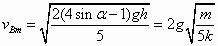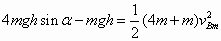 解:(1)設(shè)當(dāng)物體A剛剛離開地面時(shí),彈簧的伸長(zhǎng)量為為xA,由: kxA=mg(1分) 此時(shí)以B為研究對(duì)象,物體B受到重力mg、彈簧的彈力kxA、細(xì)線的拉力T三個(gè)力的作用.設(shè)物體B的加速度為a,根據(jù)牛頓第二定律, 對(duì)B有:T-mg-kxA=ma(1分) 對(duì)C有:4mgsinα-T=4ma(1分) 由以上兩式得:4mgsinα-mg-kxA=5ma(1分) 當(dāng)B獲得最大速度時(shí),有:a=0 解得:sinα=1/2 所以:α=30°(1分) (2)開始時(shí)彈簧壓縮的長(zhǎng)度為:xB=mg/k(1分) 當(dāng)物體A剛離開地面時(shí),物體B上升的距離以及物體C沿斜面下滑的距離為:h=xA+xB(1分) 由于xA=xB,彈簧處于壓縮狀態(tài)和伸長(zhǎng)狀態(tài)時(shí)的彈性勢(shì)能相等,彈簧彈力做功為零.且物體A剛剛離開地面時(shí),B、C兩物體的速度相等,設(shè)為vBm,由動(dòng)能定理: 解得: |
