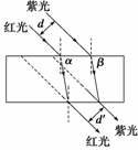 兩束平行的紅光和紫光,相距為d,斜射到玻璃磚的上表面