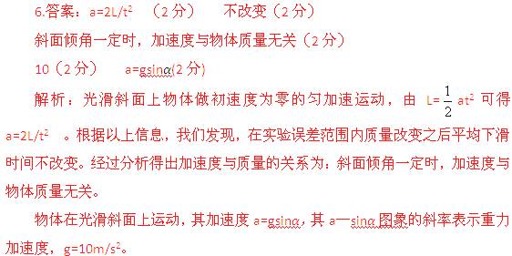 實(shí)驗(yàn)中通過改變方木塊墊放位置來調(diào)整長木板的傾角,由于沒有量角器,因此通過測量出木板頂端到水平面高度h,求出傾角α的正弦值sinα=h/L。某同學(xué)記錄了高度和加速度的對應(yīng)值,并在坐標(biāo)紙上建立適當(dāng)?shù)淖鴺?biāo)軸后描點(diǎn)作圖如下,請根據(jù)他所作的圖線求出當(dāng)?shù)氐闹亓铀俣萭= m/s2。進(jìn)一步分析可知,光滑斜面上物體下滑的加速度與傾角的關(guān)系為 。