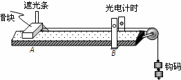 如圖所示,是用光電計時器等器材做“驗證機械能守恒定律”的實驗.在滑塊上安裝一遮光板,把滑塊放在水平氣墊導軌上并靜止在A處,并通過定滑輪的細繩與鉤碼相連,光電計時器安裝在B處.測得滑塊(含遮光板)質(zhì)量為M、鉤碼總質(zhì)量為m、遮光板寬度為d、當?shù)氐闹亓铀俣葹間.將滑塊在圖示A位置靜止釋放后,光電計時器記錄下遮光板通過光電門的時間分別為△t.