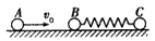 如圖所示的三個(gè)小球的質(zhì)量都為m,B、C兩球用輕彈簧連接后放在光滑的水平面上,A球以速度v0沿B、C兩球球心的連線向B球運(yùn)動(dòng),碰后A、B兩球粘在一起。問(wèn):
