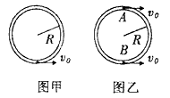(2)現(xiàn)將管道水平放置在光滑水平面上,管直徑兩端A、B處有兩個(gè)與第一問(wèn)完全相同的小球(如圖乙),初速度仍均為v0,當(dāng)兩球相遇時(shí),小球速度大小為多少?