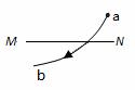 如圖所示,M、N是正點電荷產(chǎn)生的電場中的一條電場線.一個電子從a到b穿越這條電場線的軌跡如圖所示.關于該電子在a、b兩點的加速度和速度大小的說法正確的是( )