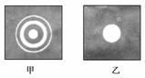 如圖所示,甲、乙兩圖是單色光分別入射到兩圓孔形成的圖象,由圖判斷甲是光的________(選填“干涉”或“衍射”)圖象。圖甲所對應的圓孔孔徑________(選填“大于”、“小于”或“等于”)圖乙所對應的圓孔孔徑。