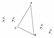 用三棱鏡做測定玻璃的折射率,先在白紙上放好三棱鏡,在棱鏡的一側(cè)插上兩枚大頭針P1和P2,然后,在棱鏡的另一側(cè)觀察,調(diào)整視線使P1的像被P2擋。唤又谘劬λ诘囊粋(cè)再插兩枚大頭針P3和P4,使P3擋住P2、P1的像,P4擋住P3和P1、P2的像,在紙上已標(biāo)明大頭針的位置和三棱鏡的輪廓,如圖所示。