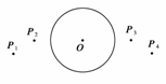 某同學(xué)在測定一厚度均勻的圓形玻璃的折射率時,先在白紙上作一與圓形玻璃同半徑的圓,圓心為O,將圓形玻璃平放在白紙上,使其邊界與所畫的圓重合。在玻璃一側(cè)豎直插兩枚大頭針P1和P2,在另一側(cè)再先后插兩枚大頭針P3和P4,使從另一側(cè)隔著玻璃觀察時,大頭針P4、P3和P2、P1的像恰在一直線上,移去圓形玻璃和大頭針后,在圖中畫出:
