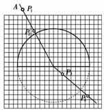 (1)沿P1、P2連線方向的入射光線,通過圓形玻璃后的傳播方向;