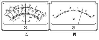 (2)將滑動變阻器的滑片調(diào)到適當(dāng)位置,使多用電表的示數(shù)如圖乙所示,這時電壓表的示數(shù)如圖丙所示。多用電表和電壓表的讀數(shù)分別為 和 。
