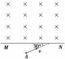 如圖所示,直線MN上方存在垂直紙面向里、磁感應(yīng)強度大小為B的勻強磁場,現(xiàn)有一質(zhì)量為m、帶電荷量為+q的粒子在紙面內(nèi)以某一速度從A點射入,其方向與MN成30°角,A點到MN的距離為d,帶電粒子重力不計。若粒子進(jìn)入磁場后再次從磁場中射出時恰好能回到A點,求:粒子在磁場中運動的時間t和粒子運動速度的大小v?