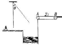 (2) 當(dāng)繩仍擺到與豎直方向夾角θ=37°時(shí),選手放開(kāi)繩子,由于慣性選手繼續(xù)斜向上運(yùn)動(dòng)到最高點(diǎn),此時(shí)剛好站到水平傳送帶左端A點(diǎn), 傳送帶始終以v1=3m/s的速度勻速向左運(yùn)動(dòng),傳送帶的另一端B點(diǎn)就是終點(diǎn),且SAB=3.75m.若選手在傳送帶上不提供動(dòng)力自由滑行,受到的摩擦阻力為自重的0.2倍,通過(guò)計(jì)算說(shuō)明該選手是否能順利沖過(guò)終點(diǎn)B,并求出選手在傳送帶上滑行過(guò)程中因摩擦而產(chǎn)生的熱量Q。