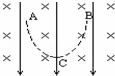 空間存在豎直向下的勻強(qiáng)電場(chǎng)和水平方向(垂直紙面向里)的勻強(qiáng)磁場(chǎng),如圖所示,已知一離子在電場(chǎng)力和洛侖茲力共同作用下,從靜止開始自A點(diǎn)沿曲線ACB運(yùn)動(dòng),到達(dá)B點(diǎn)時(shí)速度為零,C為運(yùn)動(dòng)的最低點(diǎn).不計(jì)重力,則( 。