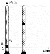 某研究性學(xué)習(xí)小組進(jìn)行了如下實(shí)驗(yàn):如圖所示,在一端封閉的光滑細(xì)玻璃管中注滿清水,水中放一個(gè)紅蠟塊做成的小圓柱體R.將玻璃管的開口端用膠塞塞緊后豎直倒置且與 y 軸重合,在R從坐標(biāo)原點(diǎn)以速度υ0=3cm/s勻速上浮的同時(shí),玻璃管沿x軸正方向做初速度為零的勻加速直線運(yùn)動(dòng).同學(xué)們測(cè)