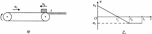 如圖所示,繃緊的水平傳送帶始終以恒定速率v1運行.初速度大小為v2的小物塊從與傳送帶等高的光滑水平地面上的A處滑上傳送帶.若從小物塊滑上傳送帶開始計時,小物塊在傳送帶上運動的v﹣t圖象(以地面為參考系)如圖乙所示.已知v2>v1,則( 。
