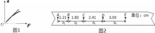 (3)打點(diǎn)計(jì)時(shí)器使用的交流電頻率f=50Hz,如圖2是某同學(xué)在正確操作下獲得的一條紙帶,其中A、B、C、D、E每?jī)牲c(diǎn)之間還有4個(gè)點(diǎn)沒(méi)有標(biāo)出,寫(xiě)出用s1、s2、s3、s4以及f來(lái)表示小車加速度的計(jì)算式:a= 。ㄓ糜⑽淖帜副硎荆;根據(jù)紙帶所提供的數(shù)據(jù),算得小車的加速度大小為 0.60 m/s2(結(jié)果保留兩位有效數(shù)字).