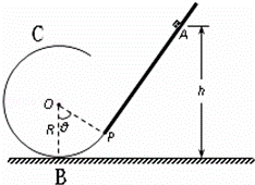 如圖所示,豎直平面內(nèi)有一段不光滑的斜直軌道與光滑的圓形軌道相切,切點(diǎn)P與圓心O的連線與豎直方向的夾角為θ=60°,圓形軌道的半徑為R,一質(zhì)量為m的小物塊從斜軌道上A點(diǎn)由靜止開(kāi)始下滑,然后沿圓形軌道運(yùn)動(dòng),A點(diǎn)相對(duì)圓形軌道底部的高度h=7R,物塊通過(guò)圓形軌道最高點(diǎn)c時(shí),與軌道間的壓力大小為3mg.求: