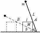 如圖所示,在光滑水平面上放一質(zhì)量為M、邊長(zhǎng)為l的正方體木塊,木塊上擱有一長(zhǎng)為L(zhǎng)的輕質(zhì)光滑棒,棒的一端用光滑鉸鏈連接于地面上O點(diǎn),棒可繞O點(diǎn)在豎直平面內(nèi)自由轉(zhuǎn)動(dòng),另一端固定一質(zhì)量為m的均質(zhì)金屬小球.開(kāi)始時(shí),棒與木塊均靜止,棒與水平面夾角為α角.當(dāng)棒繞O點(diǎn)向垂直于木塊接觸邊方向轉(zhuǎn)動(dòng)到棒與水平面間夾角變?yōu)棣碌乃矔r(shí),求木塊速度的大。