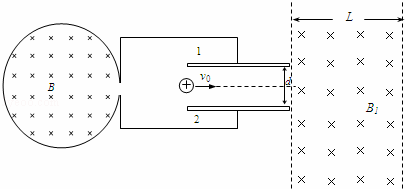 (1)磁感應(yīng)強度B從B0開始均勻增大時,試判斷1、2兩板哪板為正極板?磁感應(yīng)強度隨時間的變化率K=?