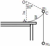 如圖所示,圓心在O點(diǎn)、半徑為R的光滑圓弧軌道ABC豎直固定在水平桌面上,OC與OA的夾角為60°,軌道最低點(diǎn)A與桌面相切.一足夠長(zhǎng)的輕繩兩端分別系著質(zhì)量為m1和m2的兩小球(均可視為質(zhì)點(diǎn)),掛在圓弧軌道光滑邊緣C的兩邊,開(kāi)始時(shí)m1位于C點(diǎn),然后從靜止釋放.則( 。