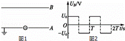 如圖1,A板的電勢UA=0,B板的電勢UB隨時間的變化規(guī)律如圖2所示.電子只受電場力的作用,且初速度為零,則( )