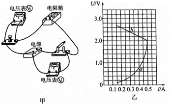 為了測(cè)定電源電動(dòng)勢(shì)E、內(nèi)電阻r的大小并同時(shí)描繪出小燈泡的伏安特性曲線,某同學(xué)設(shè)計(jì)了如圖甲所示的電路.閉合開(kāi)關(guān),調(diào)節(jié)電阻箱的阻值,同時(shí)記錄電阻箱的阻值R,電壓表V1的示數(shù)U1,電壓表V2的示數(shù)U2.根據(jù)記錄數(shù)據(jù)計(jì)算出流過(guò)電阻箱的電流I,分別描繪了a、b兩條U﹣I圖線,如圖乙所示.請(qǐng)回答下列問(wèn)題: