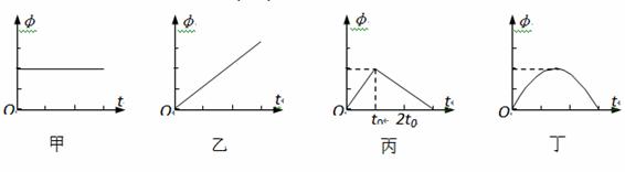 穿過閉合回路的磁通量Φ隨時間t變化的圖像分別如圖甲、乙、丙、丁所示,下列關于回路中產生的感應電動勢的論述,正確的是:( )