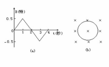 如圖所示,圓形線圈垂直放在勻強(qiáng)磁場里,第1秒內(nèi)磁場方向指向紙里,如圖(b).若磁感應(yīng)強(qiáng)度大小隨時(shí)間變化的關(guān)系如圖(a),那么,下面關(guān)于線圈中感應(yīng)電流的說法正確的是: ![]()