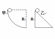 如圖所示,質(zhì)量相同的甲乙兩個(gè)小物塊,甲從豎直固定的1/4光滑圓弧軌道頂端由靜止滑下,軌道半徑為R,圓弧底端切線水平,乙從高為R的光滑斜面頂端由靜止滑下。下列判斷正確的是( )
