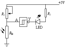 如圖所示是某路燈的光傳感電路原理圖,當(dāng)光敏電阻RG受到光照時(shí),阻值____________(填“變大”、“變小”),非門(mén)輸入端A出現(xiàn)____________電平,輸出端Y出現(xiàn)____________電平(填“高”或“低”),發(fā)光二極管LED反向截止,____________發(fā)光(填“能”或“不能”),當(dāng)把光遮住時(shí),RG阻值增大,輸入端A出現(xiàn)____________電平,Y端是____________電平(填“高”或“低”),二極管正向?qū)╛___________發(fā)光(填“能”或“不能”)。