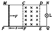 如圖所示,光滑導(dǎo)軌MN、PQ在同一水平面內(nèi)平行固定放置,其間距d=1 m,右端通過(guò)導(dǎo)線與阻值RL=8 Ω的小燈泡L相連,CDEF矩形區(qū)域內(nèi)有方向豎直向下、磁感應(yīng)強(qiáng)度B=1 T的勻強(qiáng)磁場(chǎng),一質(zhì)量m=50 g、阻值為R=2 Ω的金屬棒在恒力F作用下從靜止開(kāi)始運(yùn)動(dòng)s=2 m后進(jìn)入磁場(chǎng)恰好做勻速直線運(yùn)動(dòng).(不考慮導(dǎo)軌的電阻,金屬棒始終與導(dǎo)軌垂直并保持良好接觸).求: