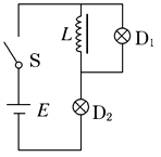 如圖所示,E為電池,L是電阻可忽略不計(jì)、自感系數(shù)足夠大的線圈,D1、D2是兩個(gè)規(guī)格相同且額定電壓足夠大的燈泡,S是控制電路的開(kāi)關(guān)。這個(gè)電路,下列說(shuō)法中正確的是