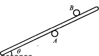 如圖所示,在豎直墻上有兩根相距為2a的水平木樁A和B,有一細(xì)棒置于A上、B下與水平方向成θ角,細(xì)棒與木樁之間的靜摩擦因數(shù)為μ,求要使細(xì)棒靜止,其重心與木樁A之間距離應(yīng)滿足的條
