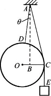 半徑為R、質(zhì)量為M1的均勻圓球與一質(zhì)量為M2的重物分別用細(xì)繩AD和ACE懸掛于同一點(diǎn)A,并處于平衡狀態(tài),如圖所示.已知懸點(diǎn)A到球心O的距離為L(zhǎng),不考慮繩的質(zhì)量和繩與球的摩擦,試求懸掛圓球的繩AD與豎直方向AB間的夾角θ.(第十屆全國(guó)中學(xué)生物理競(jìng)賽預(yù)賽試題)【15】