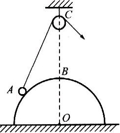 如圖所示,光滑的半球形物體固定在水平地面上,球心正上方有一光滑的小滑輪,輕繩的一端系一小球.靠放在半球上的A點,另一端繞過定滑輪后用力拉住,使小球靜止.現(xiàn)緩慢地拉繩,在使小球使球面由A到半球的頂點B的過程中,半球?qū)π∏虻闹С至和繩對小球的拉力T的大小變化情況是( ).