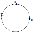 一質(zhì)點(diǎn)沿圓周作勻速圓周運(yùn)動,箭頭表示運(yùn)動方向,試在圖中A點(diǎn)畫出其速度方向,在B點(diǎn)畫出其加速度方向.