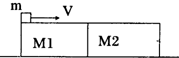 如圖,木板M1=500g,M2=400g靜止于光滑水平面上,小物塊m=100g以初速度v=10m/s滑上M1的表面,最后停在M2上時(shí)速度為1.5m/s,求: