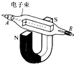 如圖所示是研究磁場(chǎng)對(duì)運(yùn)動(dòng)電荷有作用力的實(shí)驗(yàn)裝置,陰極射線管(A為其陰極)放在蹄形磁鐵的N、S兩極間,射線管的A極接在直流高壓電源的
