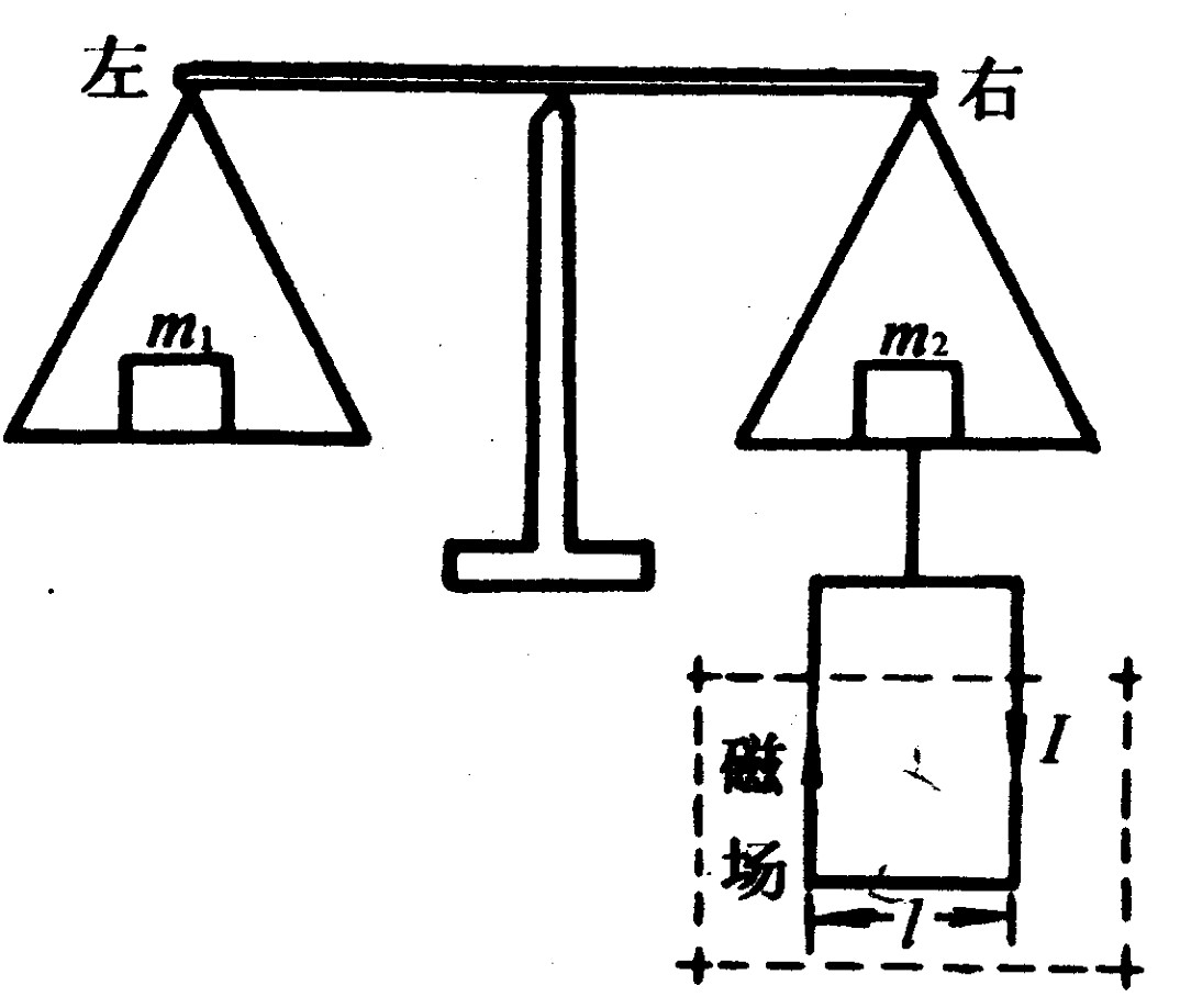 如圖所示的天平可用采測(cè)定磁感強(qiáng)度.天平的右臂下面掛有一個(gè)矩形線圈,寬為l,共N 匝,線圈的下部懸在勻強(qiáng)磁場(chǎng)中,磁場(chǎng)方向垂直紙面.當(dāng)線圈中通有電流I(方向如圖)時(shí),在天平左、右兩邊加上質(zhì)量各為m1、m2的砝碼,天平平衡.當(dāng)電流反向(大小不變)時(shí),右邊再加上質(zhì)量為m的砝碼后,天平重新平衡,由此可知:( )