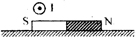 如圖所示,一條形磁鐵放在水平桌面上,在其左上方固定一根與磁鐵垂直的長直導(dǎo)線,當(dāng)導(dǎo)線中通以圖示方向的電流時 ( )