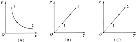 若一定質(zhì)量的理想氣體分別按圖所示的三種不同過程變化,從狀態(tài)1到狀態(tài)2,其中表示等壓變化的是