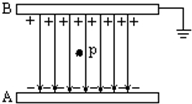 如圖,電源給A,B兩塊平行金屬板充電后斷開,A板帶負(fù)電,B板帶正電并與大地相連接,P為兩板間一點(diǎn).若將一塊玻璃板插入A,B兩板間,則P點(diǎn)電勢(shì)將