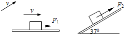 質(zhì)量m=2kg的木塊放在水平木板上,在F1=4N的水平拉力作用下恰好能沿水平面勻速滑行,則木塊與木板之間的動(dòng)摩擦因數(shù)為多少?若將木板墊成傾角為α=37°斜面(如圖所示),要使木塊仍能沿斜面勻速向上滑行,則沿平行于斜面向上的拉力F2應(yīng)多大?(已知cos37°=0.8,sin37°=0.6,g=10N/kg)