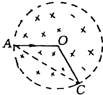如圖,一個電子沿AO方向垂直射入勻強(qiáng)磁場中,磁場只限于半徑為R的圓內(nèi).若電子速度為υ,質(zhì)量為m,帶電量為q,磁感應(yīng)強(qiáng)度為B.電子經(jīng)磁場偏轉(zhuǎn)后從C點(diǎn)射出,∠AOC=120°,下面結(jié)論正確的是(  )