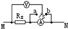 如圖所示為測量未知電阻Rx的部分電路,當開關S合在a點時,電壓表示數(shù)為8V,電流示數(shù)為0.2A; 當開關S合在b點時,電壓表示數(shù)為9V,電流表示數(shù)為0.15A,則( 。