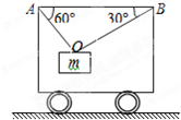 如圖所示,質(zhì)量為m的物體被兩根細(xì)繩OA、OB掛在小車上,兩根細(xì)繩與車頂水平面夾角分別為60°和30°.試求: