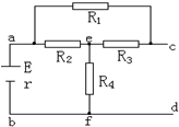 如圖,R1=R3=36Ω,R2=24Ω,R4=5Ω,電源電動(dòng)勢(shì)E=12V,內(nèi)阻r=1Ω求輸出端cd間的電壓Ucd為多少?