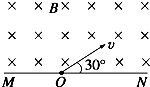 如圖所示,直線MN上方為磁感應(yīng)強(qiáng)度為B的足夠大的勻強(qiáng)磁場.一電子(質(zhì)量為m、電荷量為e)以v的速度從點O與MN成30°角的方向射入磁場中,求: