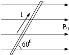 如圖所示,平行紙面向右的勻強(qiáng)磁場(chǎng)的磁感應(yīng)強(qiáng)度B1=1T,長(zhǎng)L=1m的直導(dǎo)線通有I=1A的恒定電流,導(dǎo)線平行于紙面與B1成600的夾角時(shí),發(fā)現(xiàn)其不受安培力.而將導(dǎo)線垂直于紙面放置時(shí),可測(cè)出安培力為2N,試求該區(qū)域存在的另一勻強(qiáng)磁場(chǎng)的磁感應(yīng)強(qiáng)度的大小和方向.