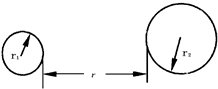 如下圖,兩球的質(zhì)量均勻分布,大小分別為M1與M2,則兩球間萬有引力大小為(  )